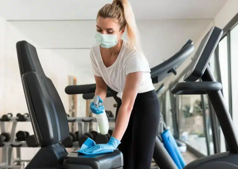 - Disease prevention: Cleaning frequently touched surfaces and fitness equipment helps reduce the chances of transmission from person to person. This helps protect against the flu, common colds, etc.